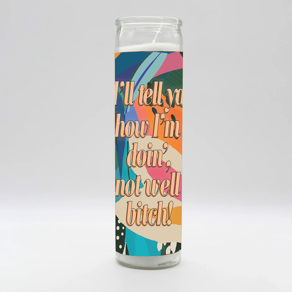Saint 'I'll Tell Ya How I'm Doing...' Quote Candle