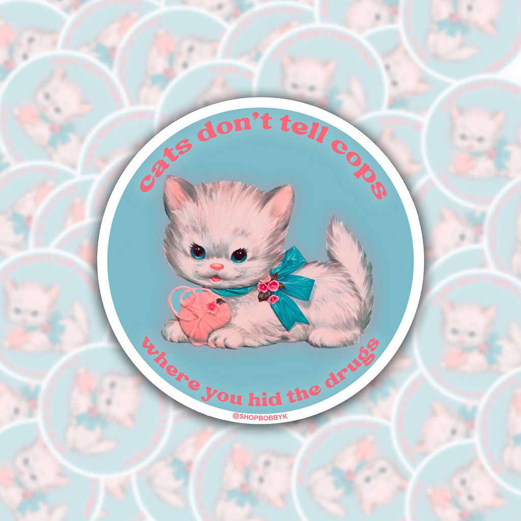 Cats Don't Tell Cops Where You Hid The Drugs Sticker (Set of 10)